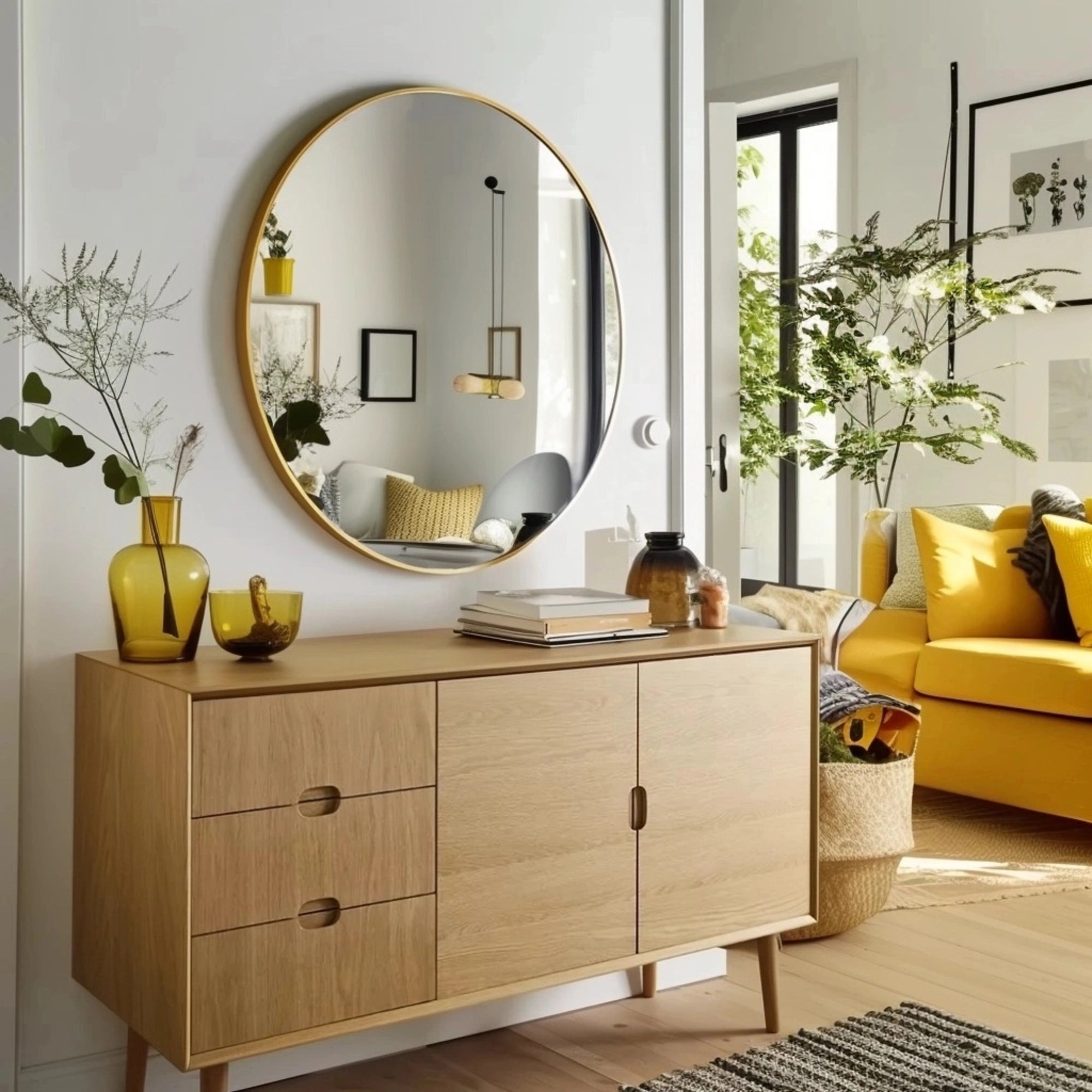 Spiegel ohne Rahmen, Badspiegel & Wohnzimmerspiegel inkl. Befestigungsset, mit polierten Kanten,Rund
