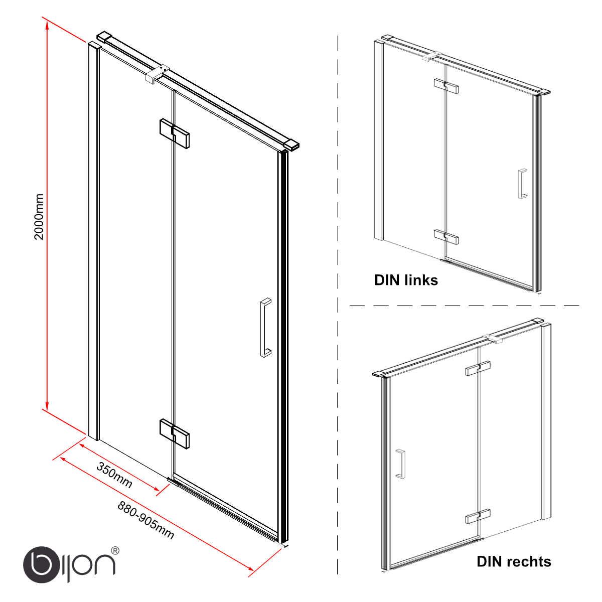 - Montage mit oder ohne Duschwanne möglich.