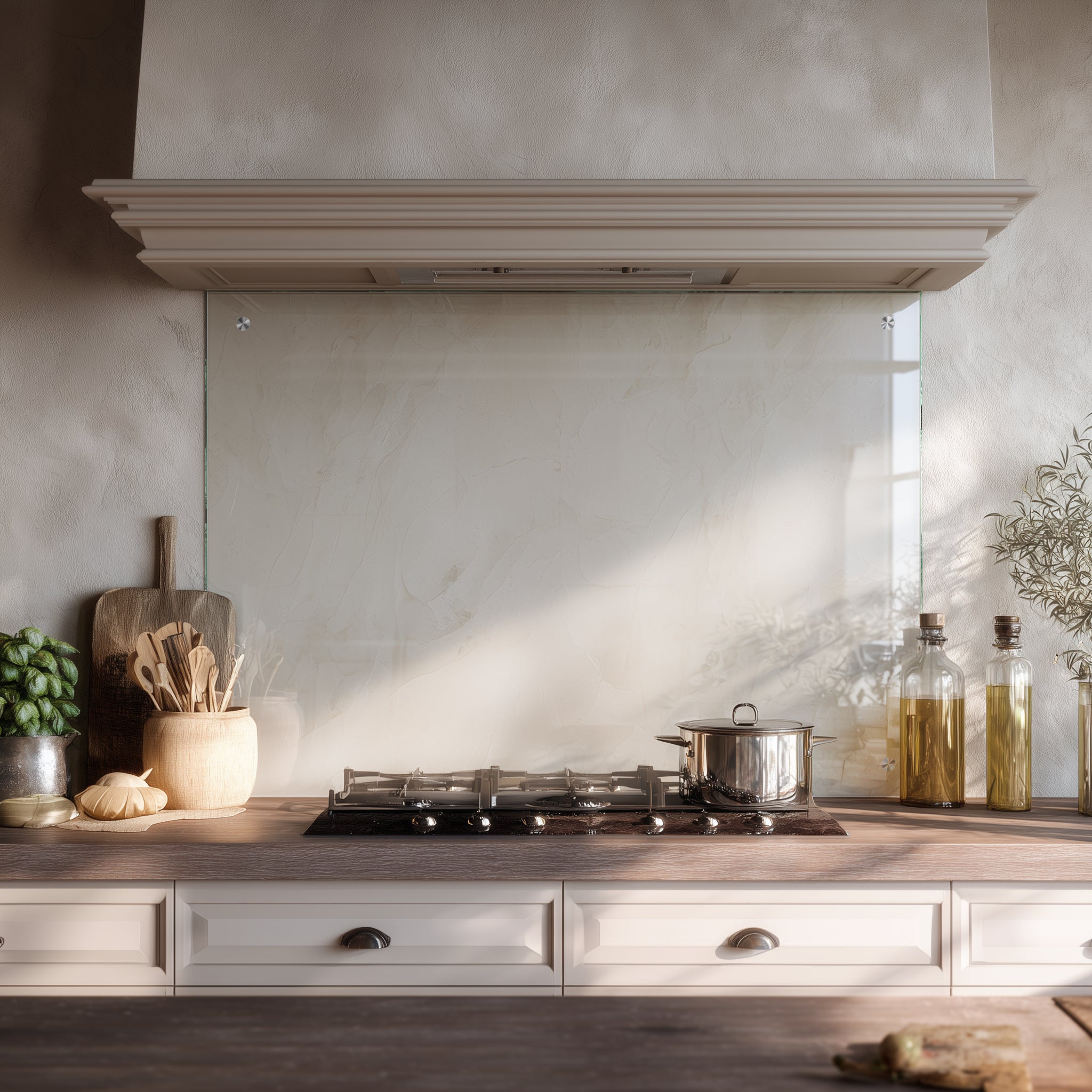 Verwandlen Sie Ihre Küche in einen stilvollen Lieblingsort – mit glänzendem Sicherheitsglas in klar oder satiniert